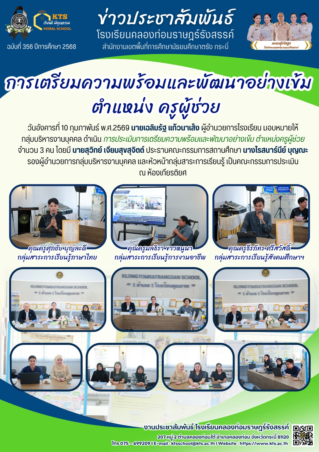- ✍️ รายงานการประเมินโครงการเสริมสร้างความเข้มแข็งระบบดูแลช่วยเหลือนักเรียน โรงเรียนคลองท่อมราษฎร์รังสรรค์ อำเภอคลองท่อม จังหวัดกระบี่